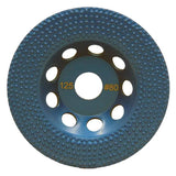 The vacuum-brazed diamond spikes offer a vacuum-brazed diamond tool with small clusters of diamonds to create a larger protrusion. This cup wheel is ideal for removing thicker coatings like carpet glue and adhesive remover. It does not bind up and clog like other abrasive technologies.
