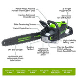 Greenworks 82V 20" 3.4kW Chainsaw with 4Ah Battery and Dual Port Charger