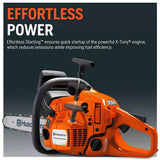 Second-generation lightweight and efficient all-around saw, ideal for those looking for an exceptionally easy chainsaw to start and maneuver. It starts quickly also with a slower pull and comes with a slimmer saw body and flip-up tank caps. It features an X-Torq engine for lower fuel consumption and reduced emission levels. Equipped with Smart Start, fuel pump, and Auto return stop switch for easier starting.