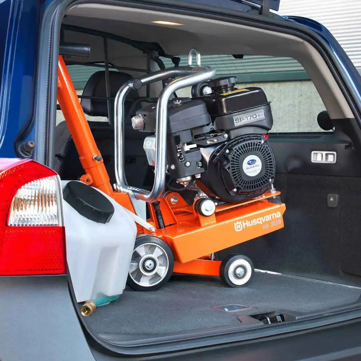The FS 300-series includes lightweight and compact floor saws. These saws are ideal for small repair jobs and are very easy to handle. They can be transported in any small vehicle. Shown with OPTIONAL water tank