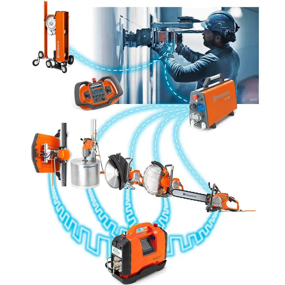 • Remote control has a logical and ergonomic design with a large and clear display, which shows the current performance of the saw for increased efficiency