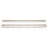 The standard grate assembly for the Kerdi-Line Linear drain system in an Ivory finish. A low-profile linear shower drain specifically designed for bonded waterproofing assemblies that can be installed adjacent to walls or at intermediate locations.