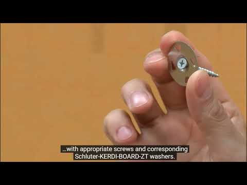 - Tabs penetrate the surface of the KERDI-BOARD and temporarily hold the washers in place to enable quick installation of the corresponding screws