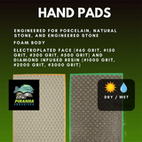 The Piranha Hand Pads come in various grit levels, from ultra-fine #3000 to coarse #60. Depending on the grit you're using, they're also designed to have one of two face types for optimal performance.