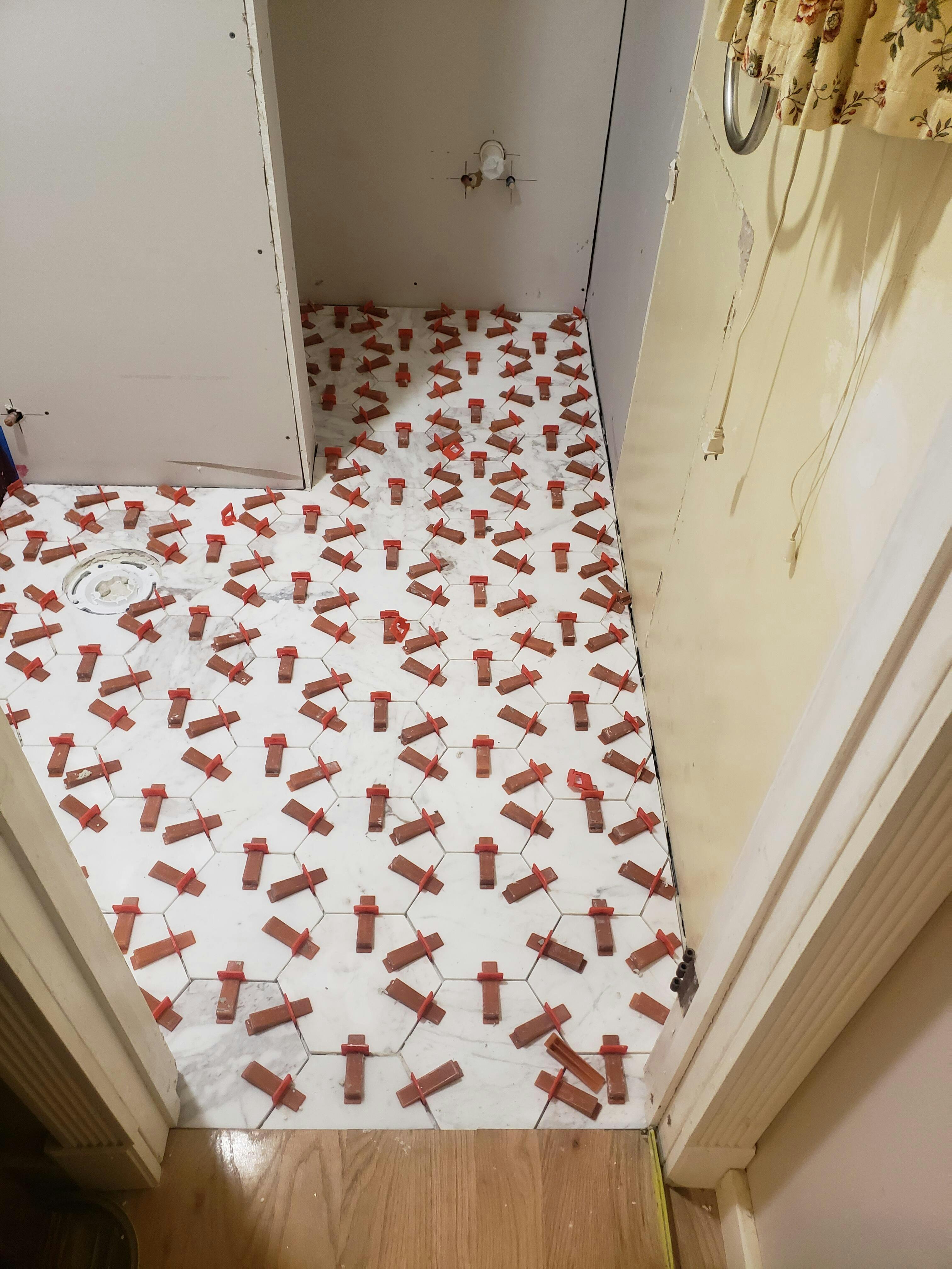 - STEP 4: Once the tile adhesive has been allowed to set. Remove the leveling spacers with the traction-adjustable plier's rubber mallet, or kick them out with your feet