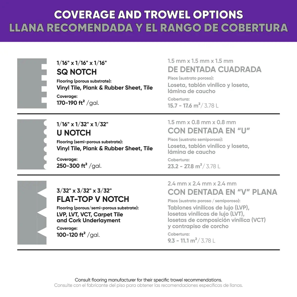 - Bonds with most concrete, APA-rated plywood, terrazzo, properly prepared vinyl composition tile (VCT), sheet flooring (non-cushioned) except self-stick tile, and radiant-heated subfloors
