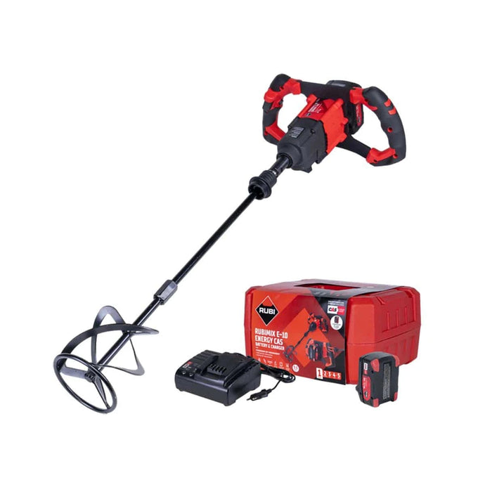 The RUBIMIX E-10 Mixer, a battery-powered electric mixer, is perfect for mixing cementitious adhesives, resins, paints, and other materials. Provides the convenience of not relying on a power point and the independence and safety of working without cords.