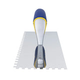The QEP Slant Comfort Grip Handle Trowel is designed for professional tile installation, offering enhanced comfort, durability, and control during mortar application.