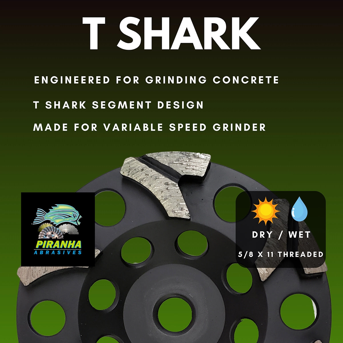 The T-Shark Grinding Cup's unique T-Shark segment design makes it stand out among concrete grinding cups. This feature integrates a clever airflow system that activates when used, boosting efficiency.