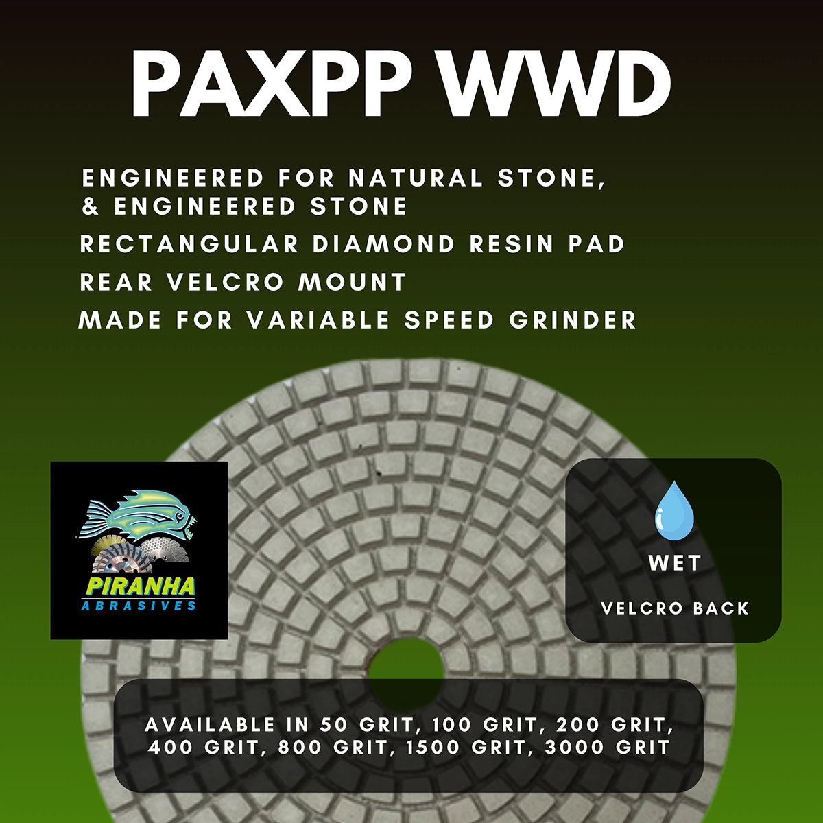 - These pads have an easy-to-use velcro back and are simple to put on and take off, allowing for quick grit changes and a smooth transition between polishing stages