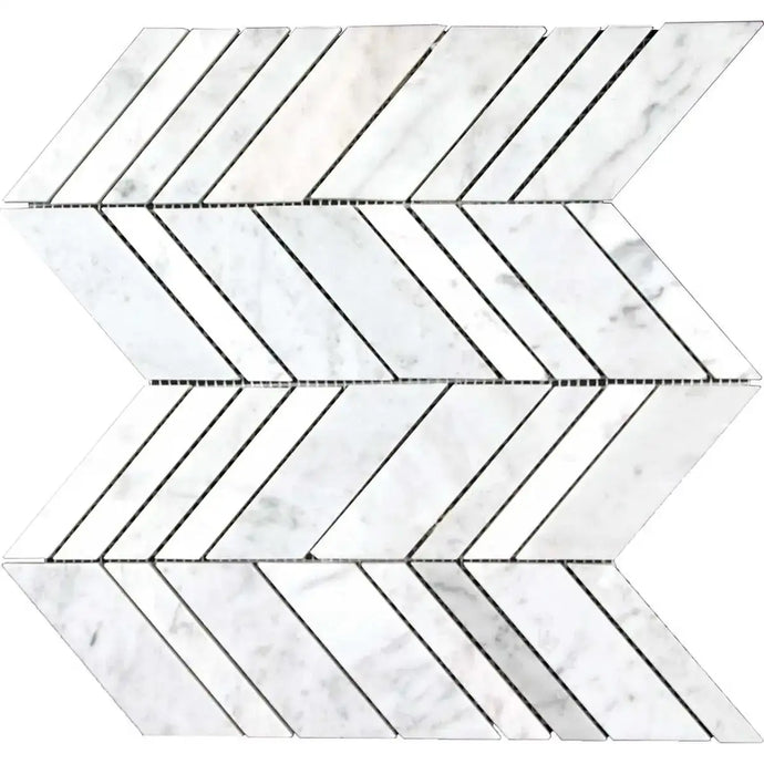 Interceramic White Carrara Marble Arrow Polished Mosaic 10" x 12" Sheet